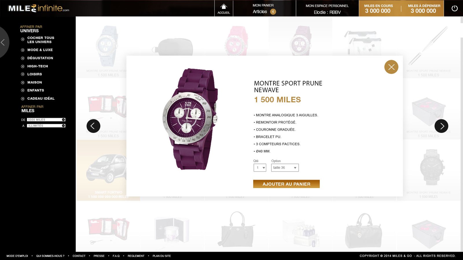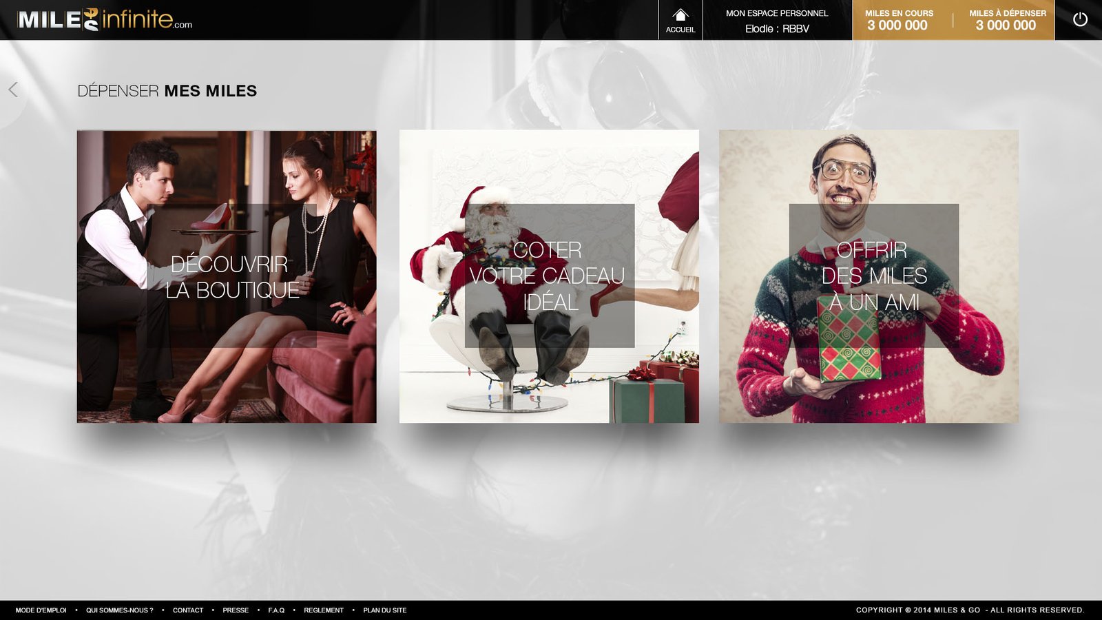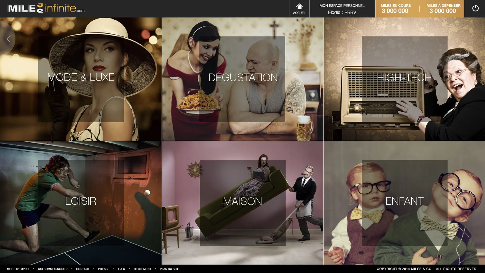 Miles infinite est un programme d’incentive du groupe Gekko Holding, dédiés aux voyageurs d’affaires. La réalisation des maquettes de la plateforme en 2012 a été une expérience créative formidable.